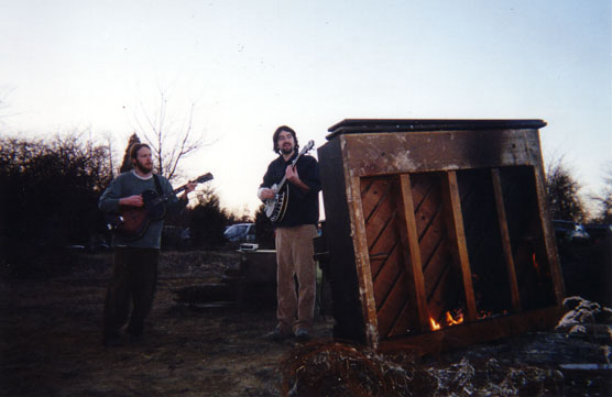 Junkyard: Bill and Steve playing "Junkyard Sunrise" as the piano burns (Jake is behind the piano)